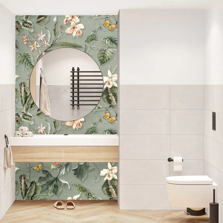 - Format 30 × 60 cm – 2–3 płytki i masz gotową ścianę prysznicową, za łóżkiem czy TV