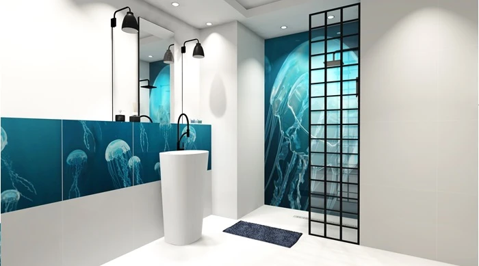 Dekor Szklany Meduza-1 60x180 to nowoczesna propozycja aranżacyjna, która przypadnie do gustu miłośnikom nieoczywistych i efektownych rozwiązań wnętrzarskich. Panel z motywem święcących meduz stanowi połączenie estetyki z funkcjonalnością, oferując zarazem wysoką jakość wykonania oraz łatwość w utrzymaniu czystości.
