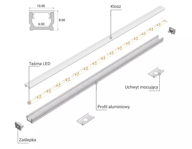 Pamiętaj, klosz z poliwęglanu do profili aluminiowych LED NANO 2 stanowi jedynie część zestawu potrzebnego do złożenia elementów oświetleniowych LED.