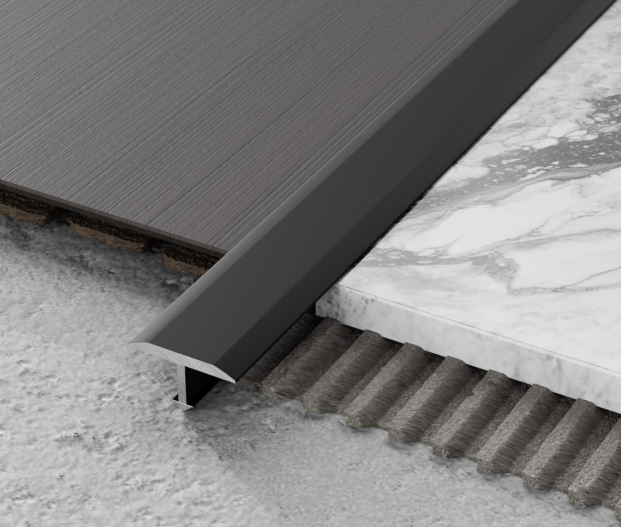Listwy typu "T" (spoinowe) skutecznie maskują połączenia oraz niedoskonałości ułożenia lub cięcia posadzek. To doskonałe rozwiązanie, aby dodać niepowtarzalnego charakteru przestrzeniom, podnosząc jednocześnie poziom wykończenia i oferując świetne rozwiązanie techniczne.