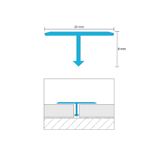 Listwa podłogowa mosiężna "T", polerowana 20mm x 2700mm