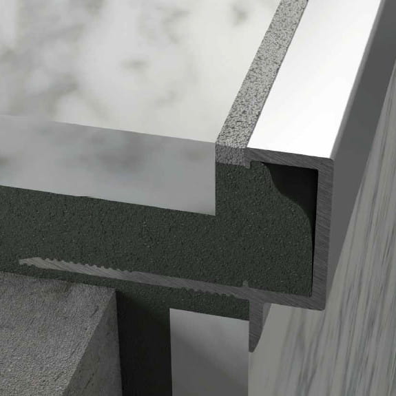 Listwa schodowa nadaje się do płytek ceramicznych, gresowych i innych okładzin. Wykonana została w całości z aluminium, następnie w procesie produkcji została anodowana, co nadało jej pożądanego koloru oraz chroni powierzchnie przed zarysowaniami, co jest bardzo istotne względem miejsca jej instalacji. Pamiętajmy, że listwa na schody narażona jest na stały kontakt z obuwiem i naciskiem.