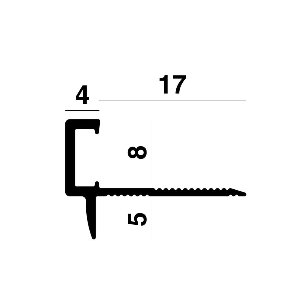 Profil aluminiowy schodowy (typu P) stosowany na łączeniu okładzin schodowych. Dzięki elementowi konstrukcji maskuje styk okładziny zastosowanej na stopnicy i podstopnicy. Listwa schodowa z kapinosem jest montowana na klej – w celu prawidłowego montażu należy wypełnić klejem wnętrze kapinosa jak na załączonej aranżacji - patrz zdjęcia listwy.