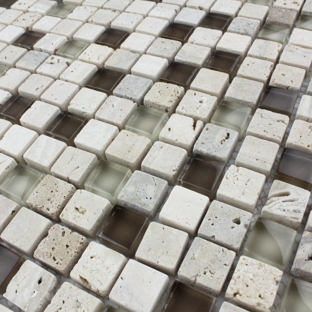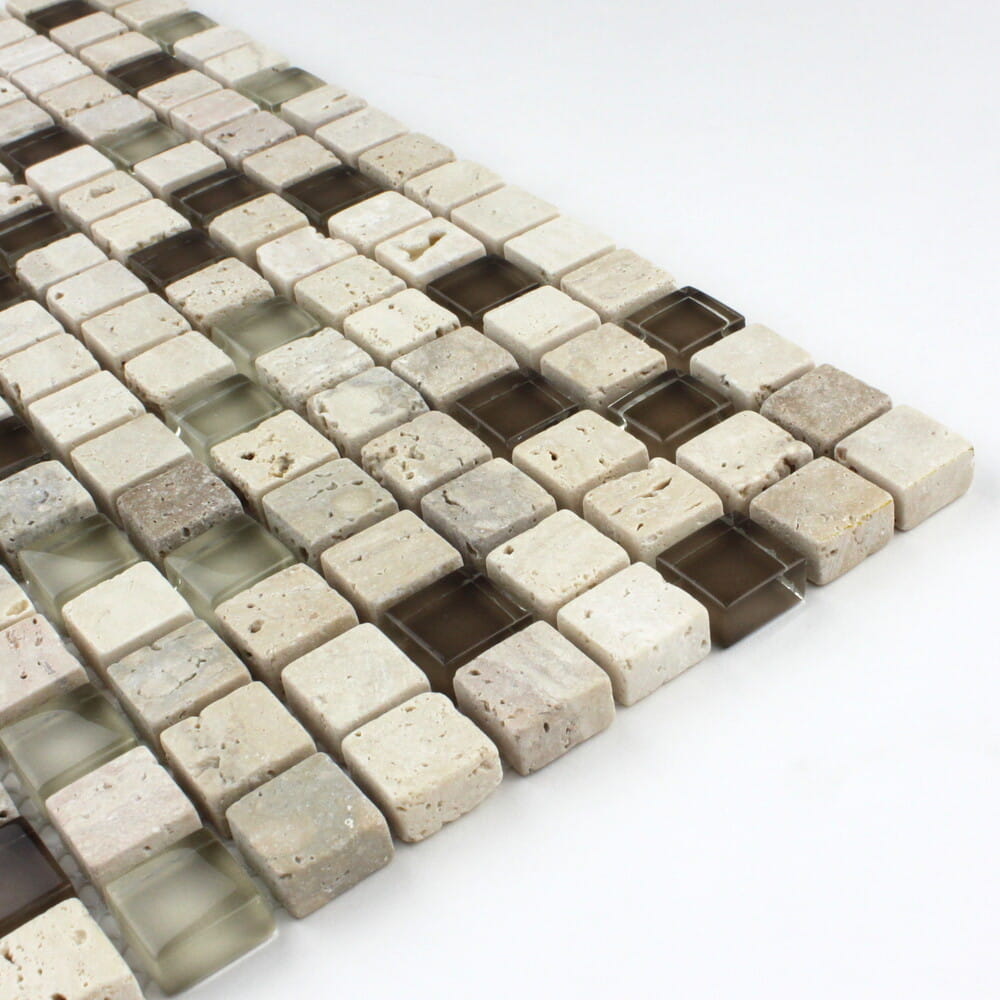 Mozaika Kamienna Beżowa z kostkami szkła K01