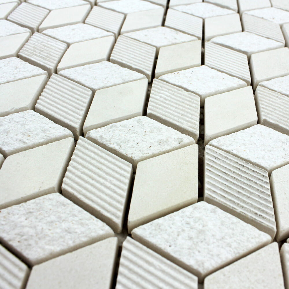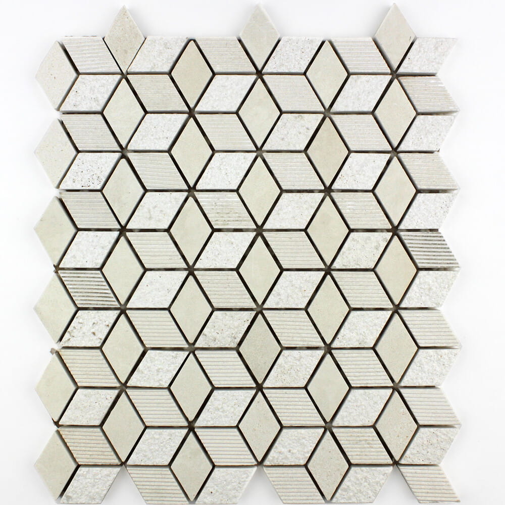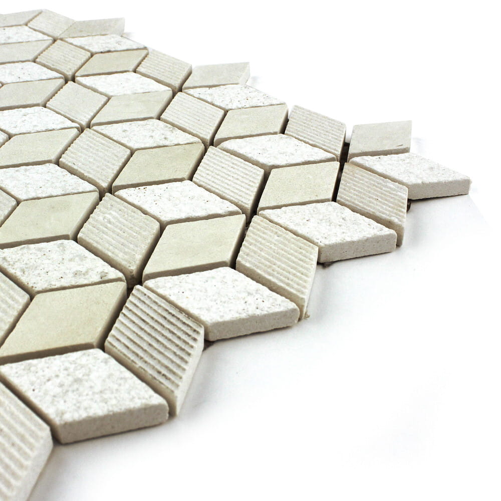 Mozaika kamienna, beżowe elementy w kształcie rombu tworzące heksagon K32.