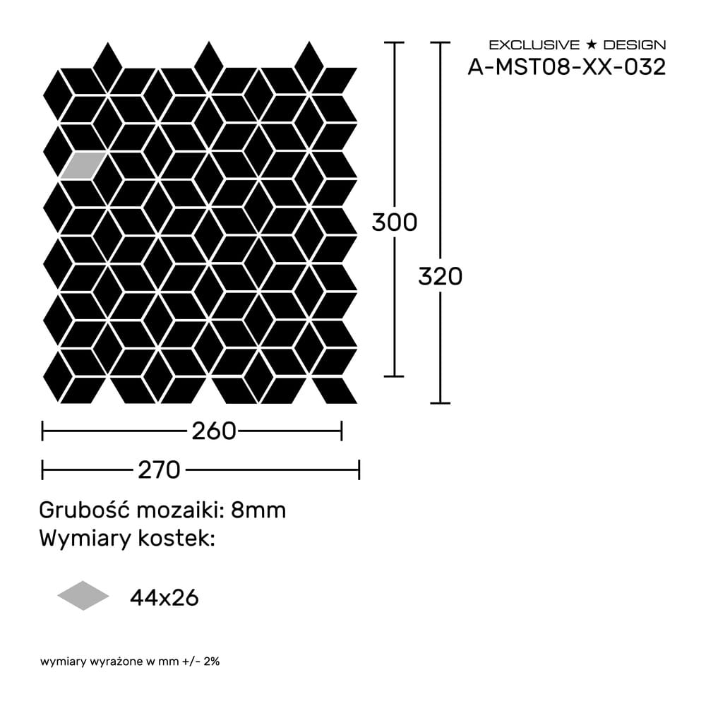 Wymiary tafli: 300x260mm (szczegóły na rysunku)