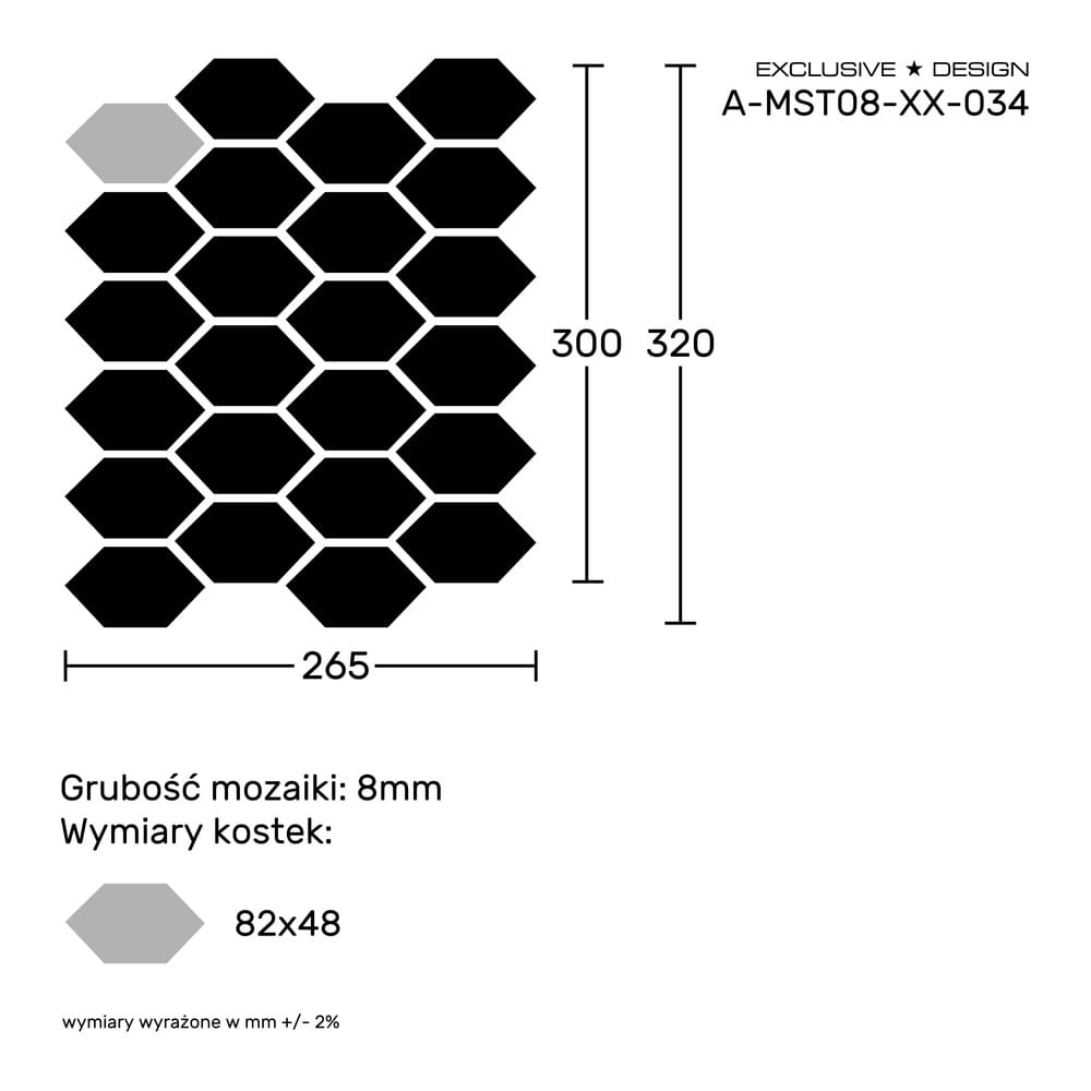 Wymiary tafli: 300x265mm (szczegóły na rysunku)
