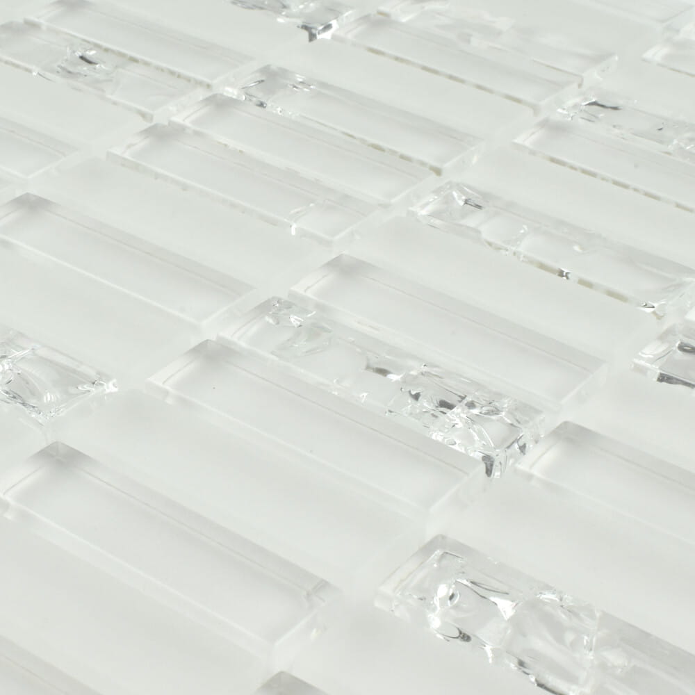 Biała mozaika z kruszonego termicznie szkła