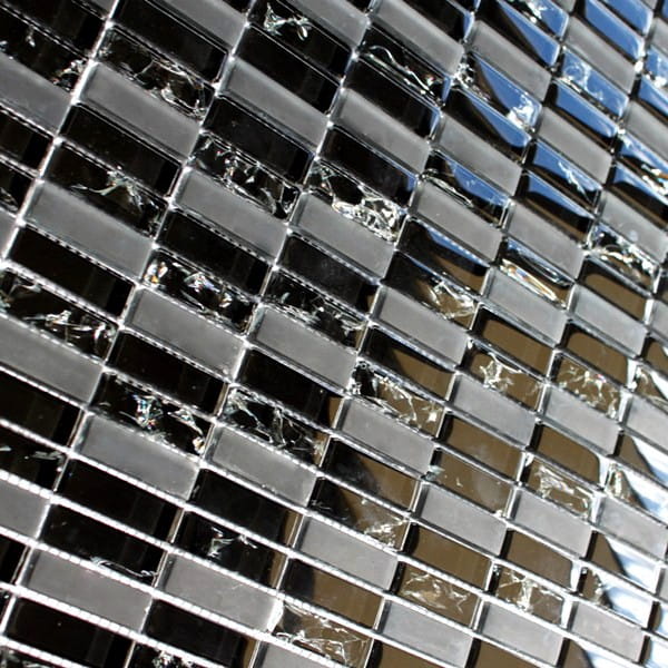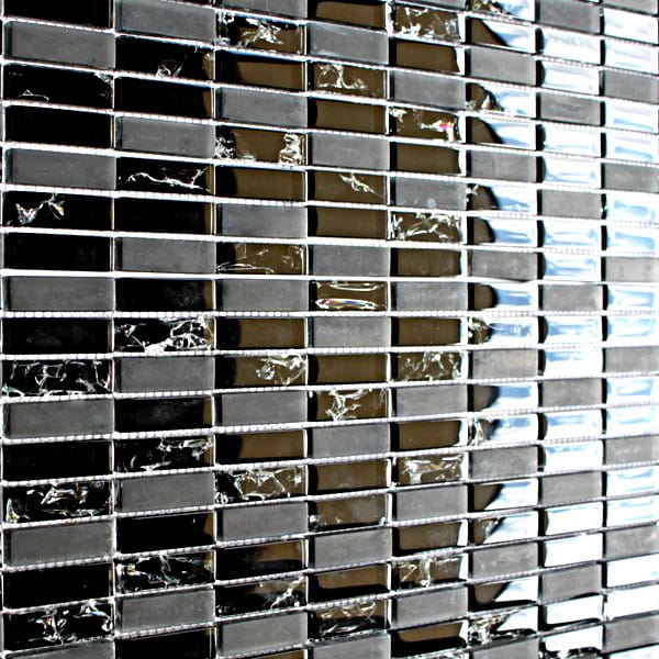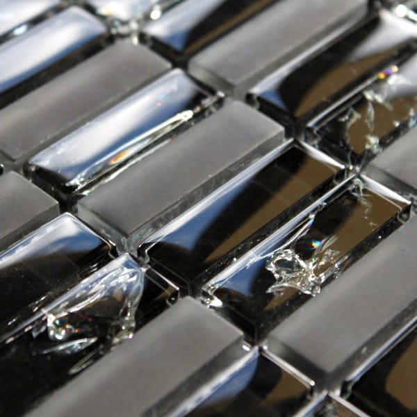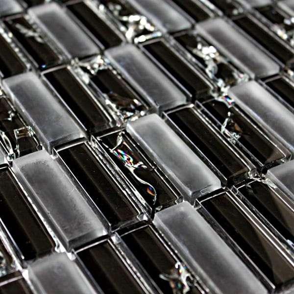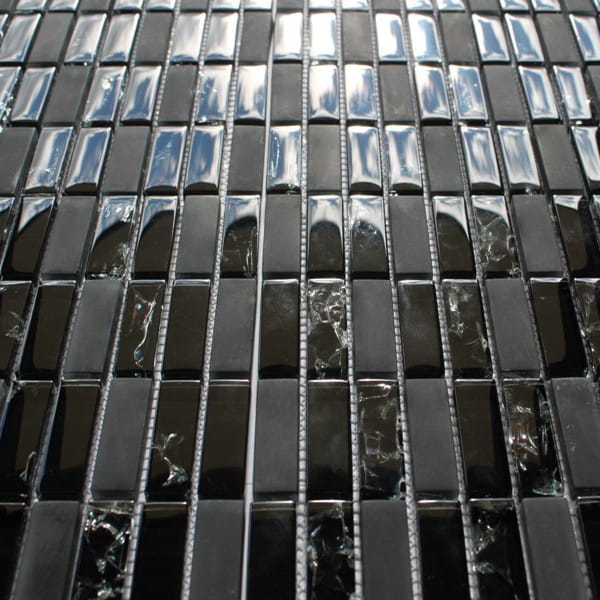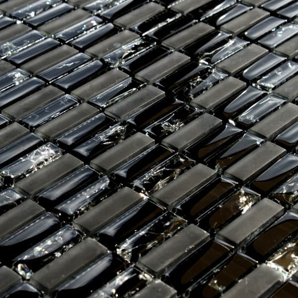 Czarna cegiałka - mozaika z kruszonym i matowym szkłem.