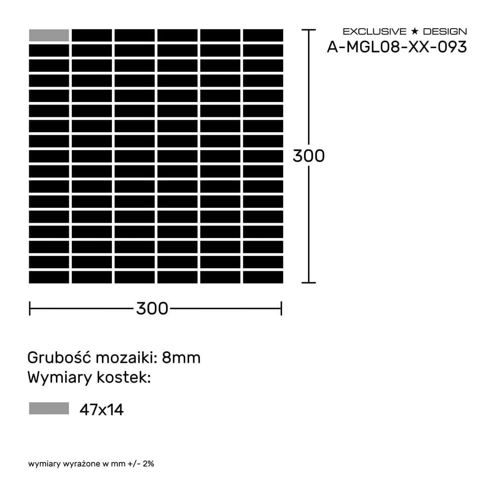 Mozaika Szklana Czarna cegiełka 8mm S93