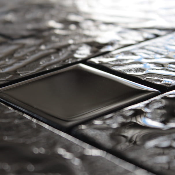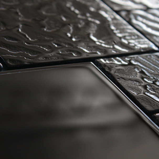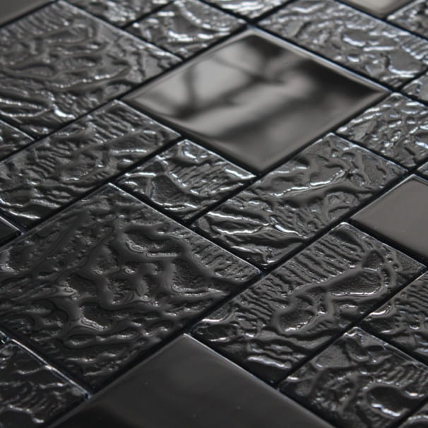 Mozaika marki EXCLUSIVE DESIGN to wyrób ręcznie wykonany. Każda pojedyncza czarna kostka mozaiki zostaje sprawdzona, po czym umieszczana na siatce transportowej ręcznie. Dzięki siatce transportowej, sam montaż tafli mozaiki jest o wiele szybszy i łatwiejszy - przec co mniej kosztowny.