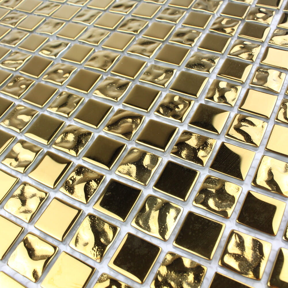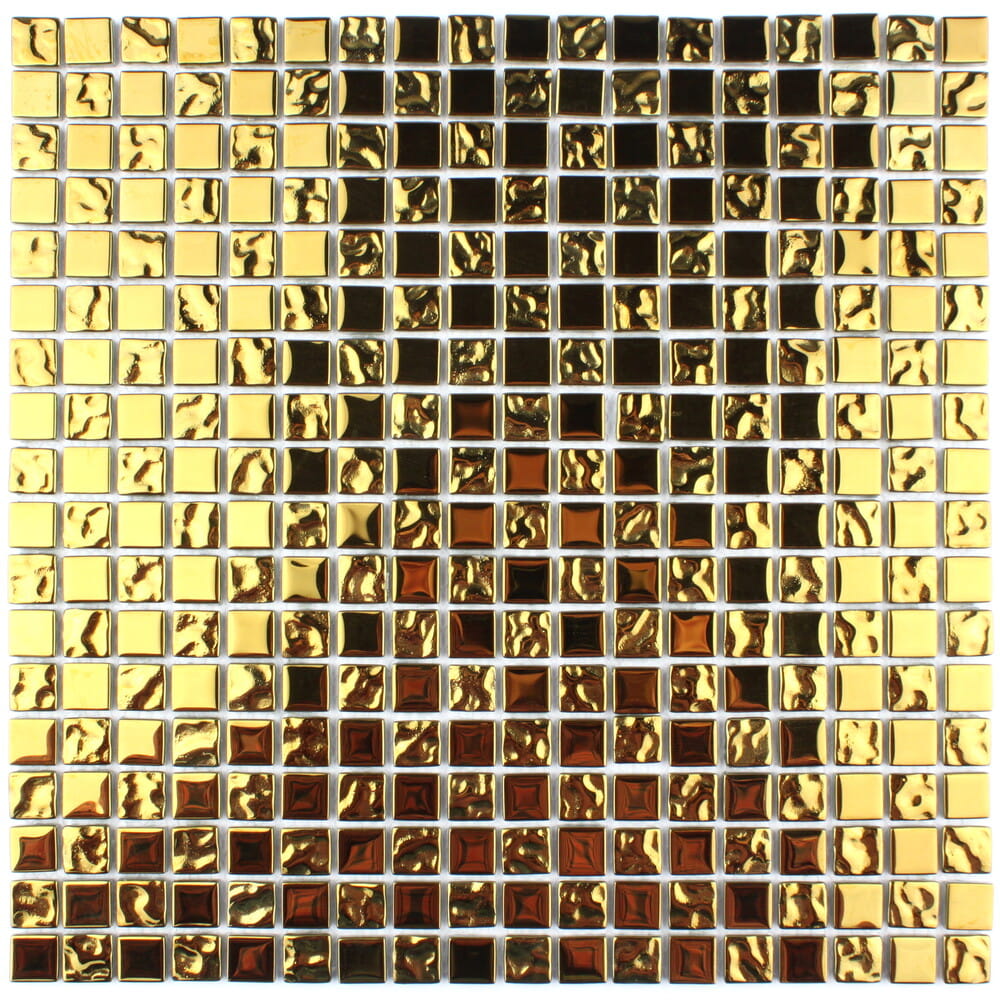 Złota mozaika o charakterystycznych mocnych refleksach i zywym odcieniu.