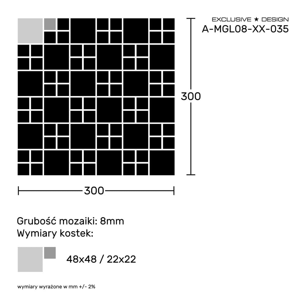 Mozaika marki EXCLUSIVE DESIGN to wyrób ręcznie wykonany. Każda pojedyncza kostka mozaiki zostaje sprawdzona, po czym umieszczana na siatce transportowej ręcznie. Dzięki siatce transportowej, sam montaż tafli mozaiki jest o wiele szybszy i łatwiejszy - przec co mniej kosztowny.