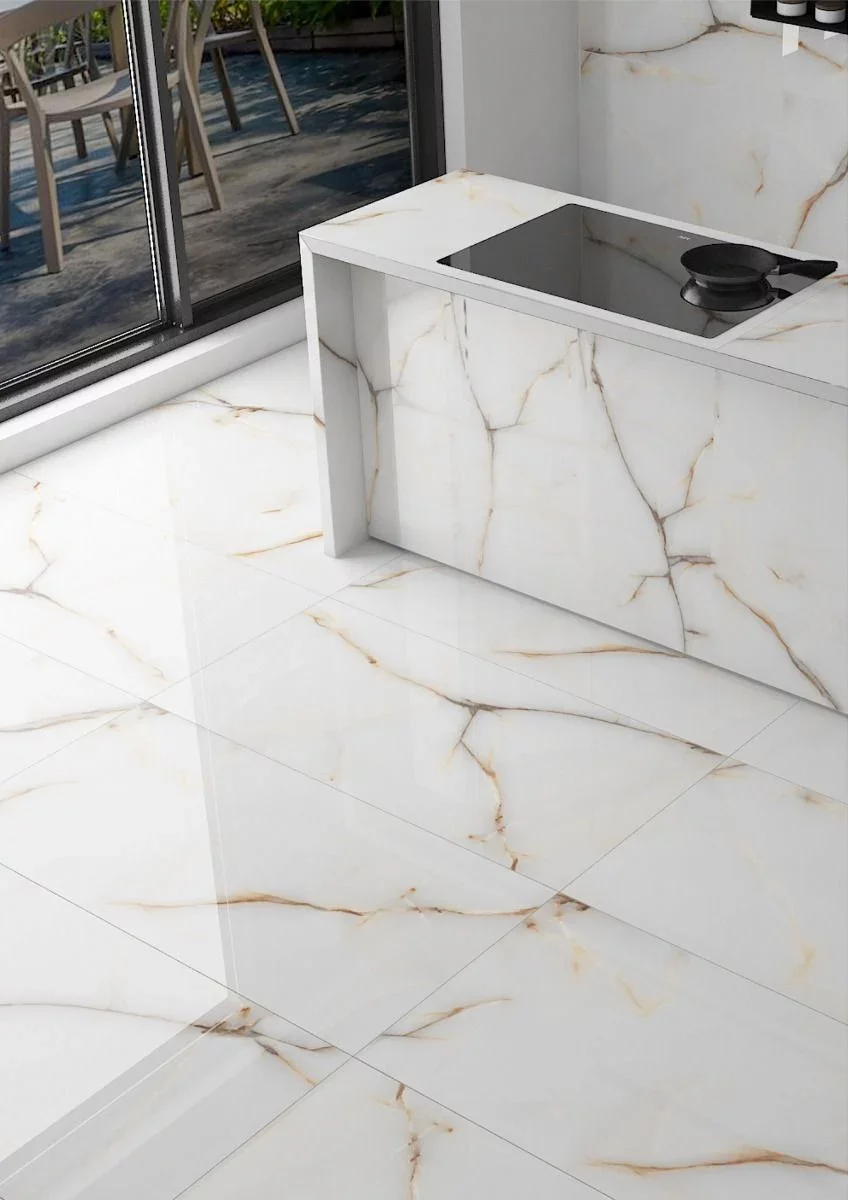 Format 60×120 cm pozwala na tworzenie harmonijnych i spójnych powierzchni na podłogach i ścianach. Minimalna liczba fug sprawia, że wnętrza wyglądają przestronnie, nowocześnie i stylowo, idealnie wpisując się w aranżacje glamour, loftowe i designerskie.