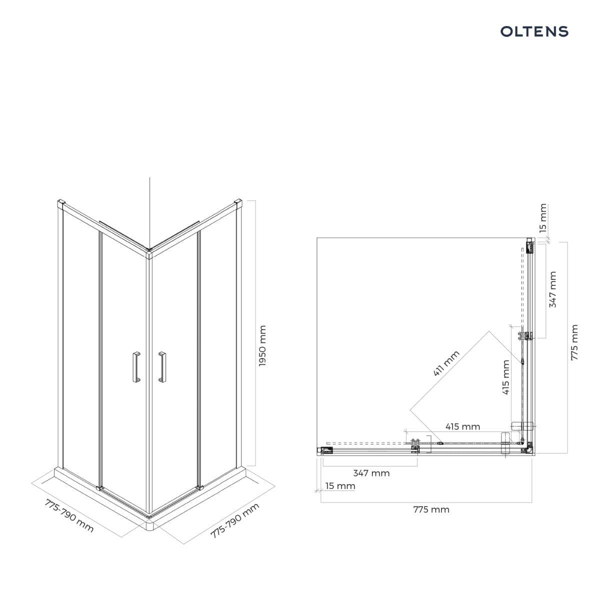 Oltens Breda kabina prysznicowa 80x80 cm kwadratowa chrom/szkło przezroczyste 20005100