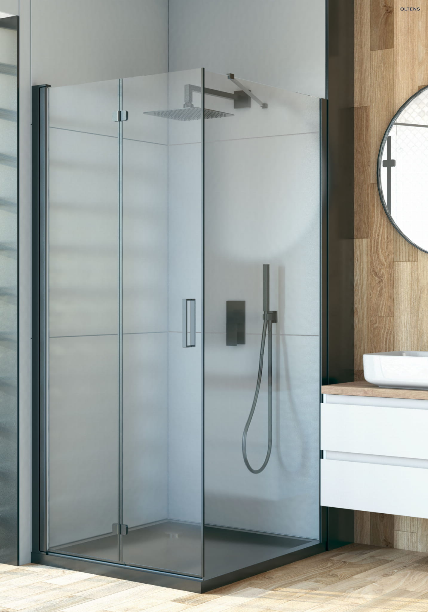 Oltens Hallan kabina prysznicowa 80x80 cm kwadratowa czarny mat/szkło przezroczyste drzwi ze ścianką 20007300