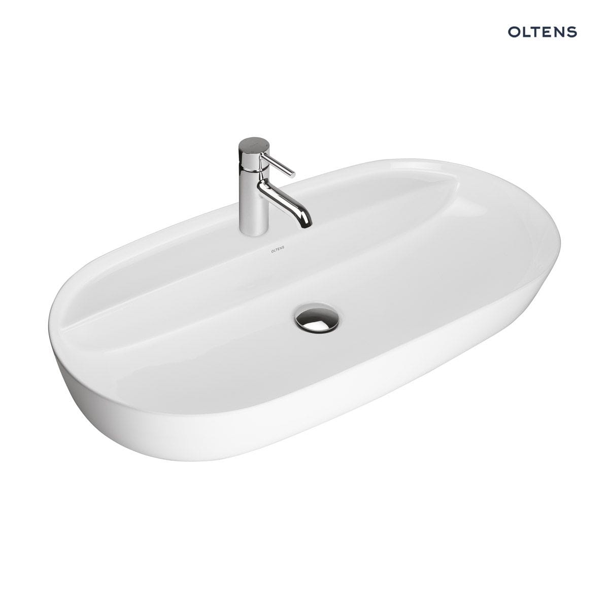 Oltens Hamnes Thin umywalka nablatowa z otworem na baterię owalna 80 x 40 cm biała z powłoką Oltens SmartClean 41815000