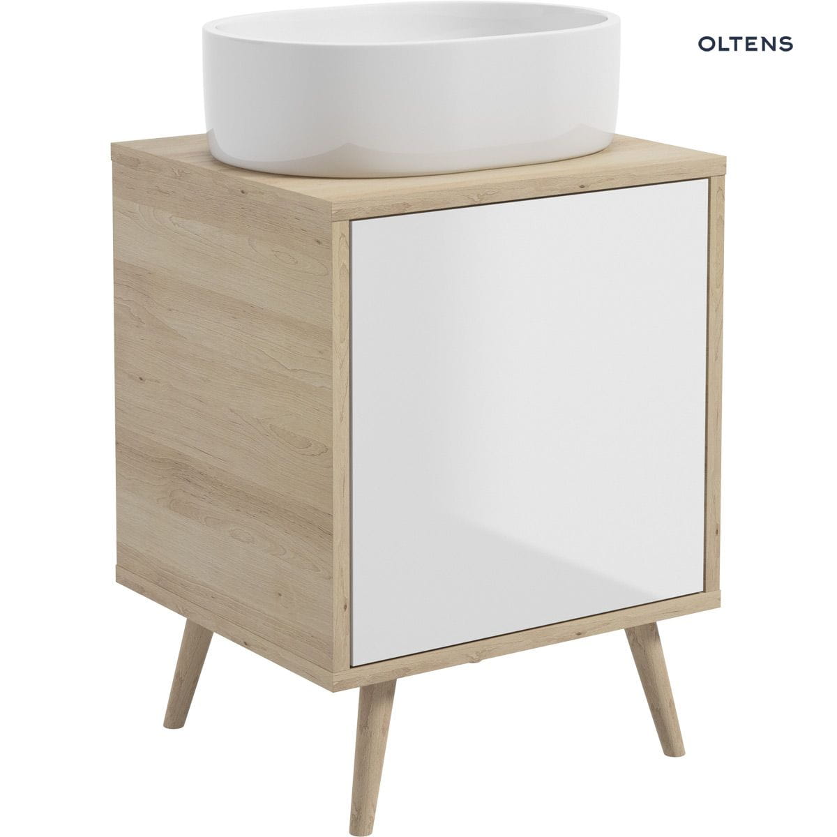 Oltens Hedvig szafka 50 cm podumywalkowa wisząca biały połysk/dąb nova 60202060