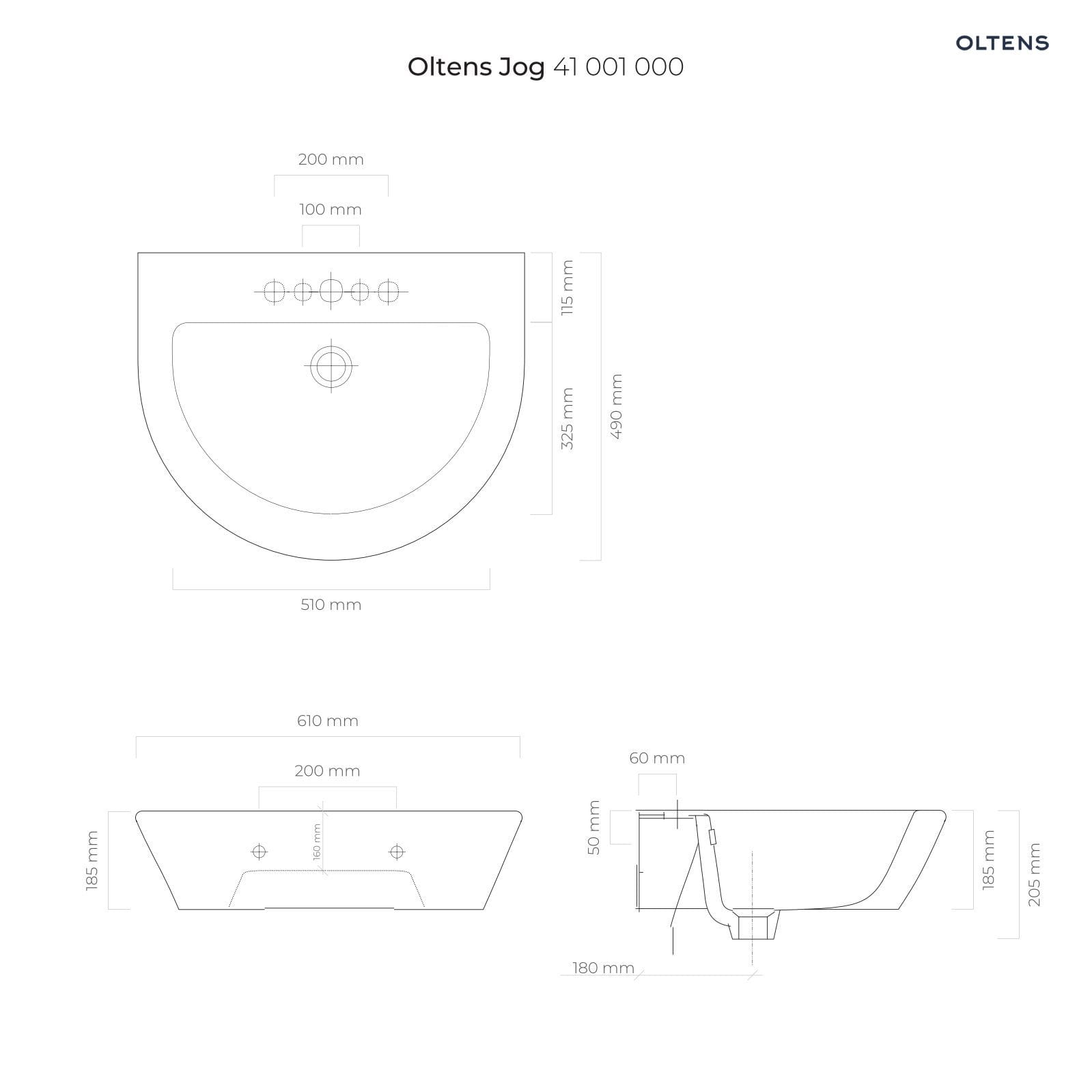 Oltens Jog umywalka 61x49 cm wisząca biała 41001000
