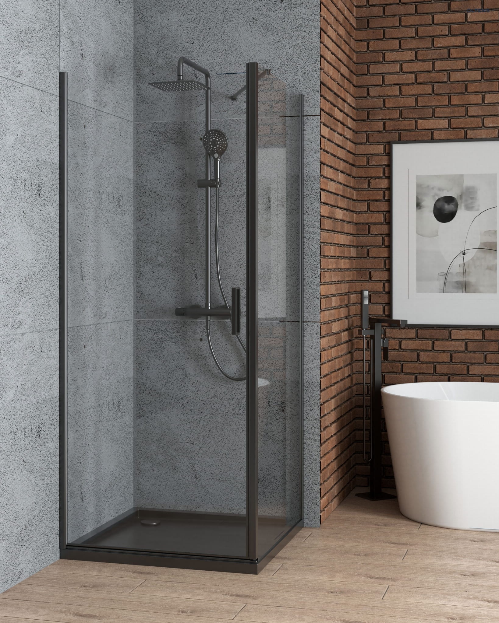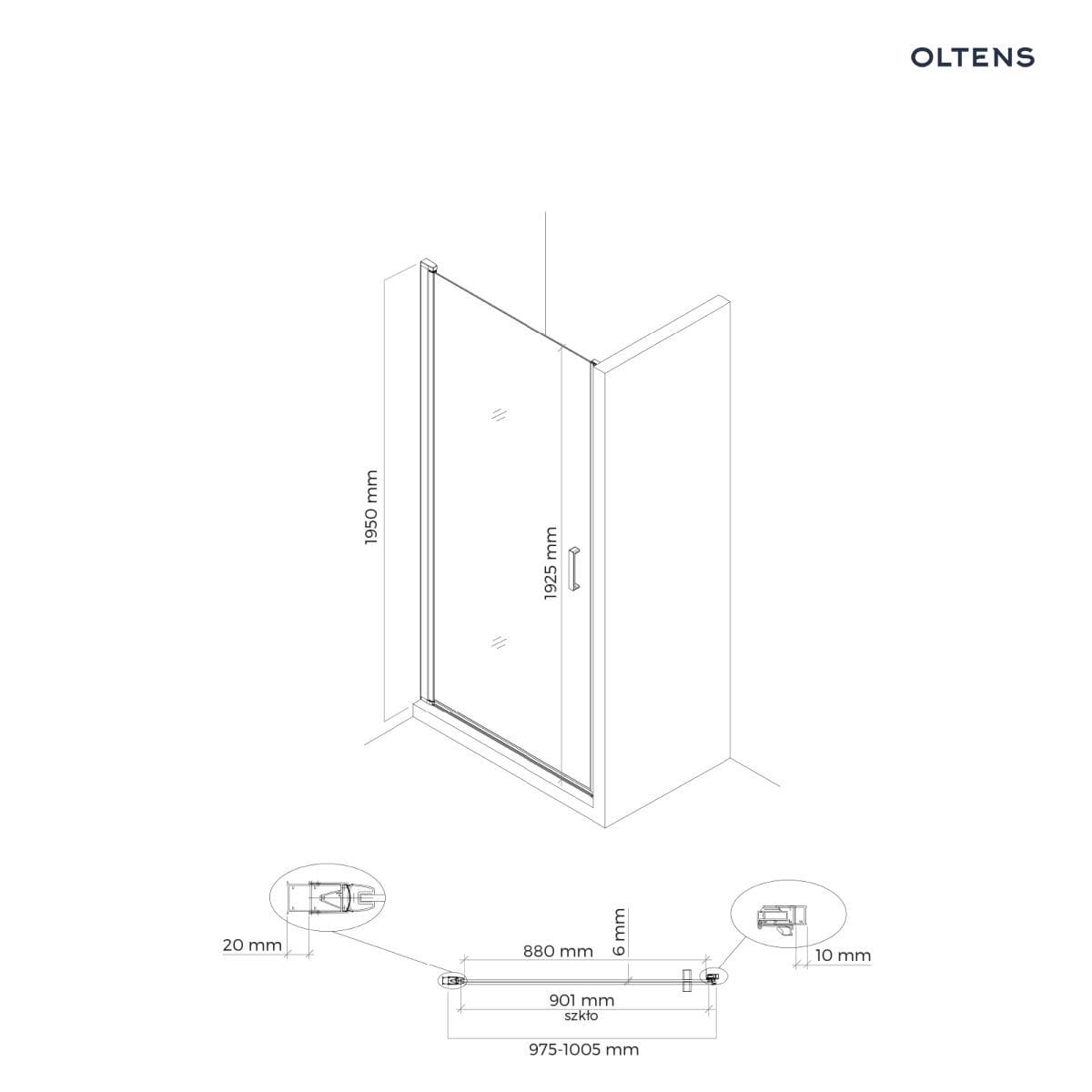 Oltens Rinnan drzwi prysznicowe 100 cm wnękowe czarny mat/szkło przezroczyste 21209300