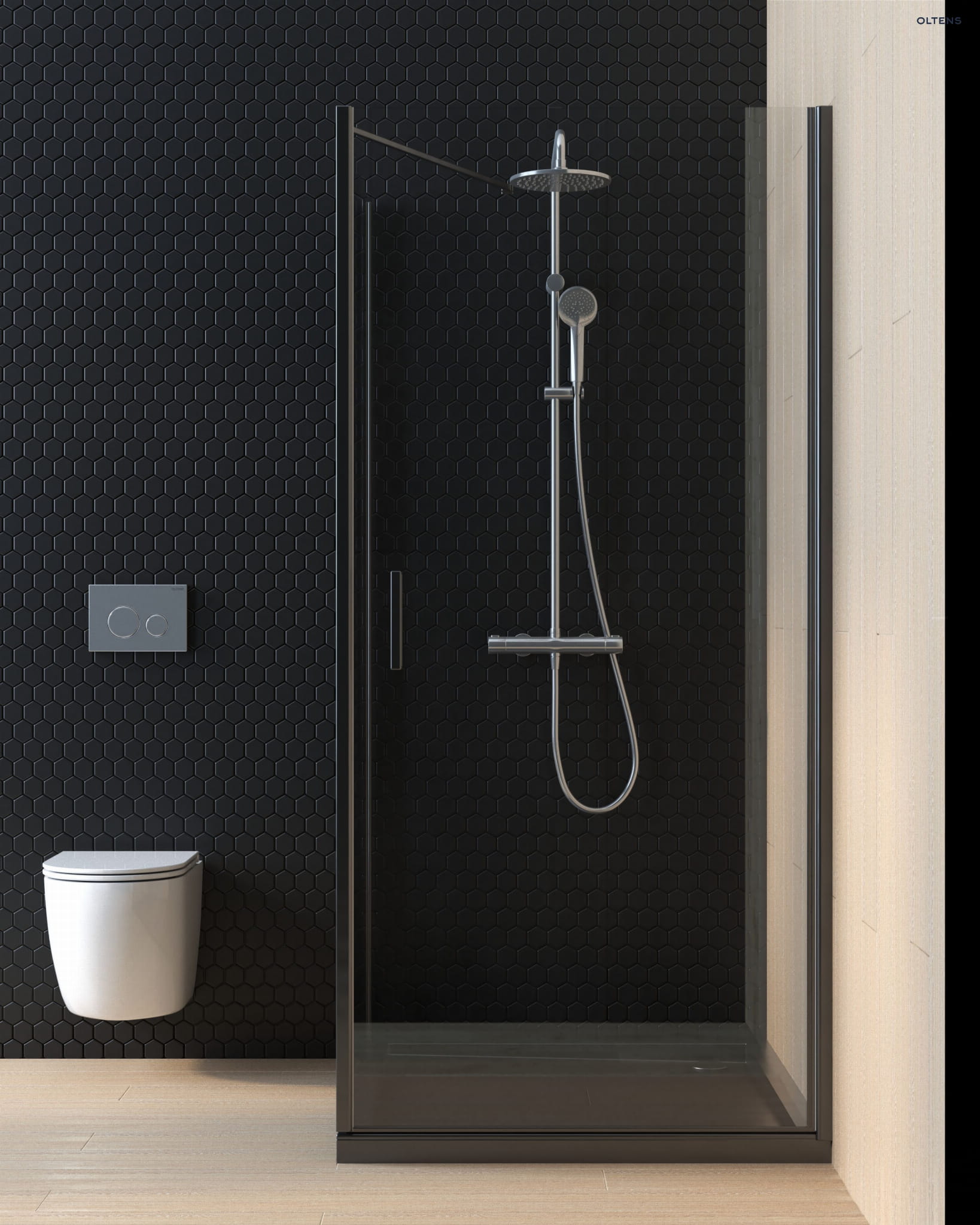 Oltens Rinnan kabina prysznicowa 100x90 cm prostokątna drzwi ze ścianką czarny mat/szkło przezroczyste 20219300