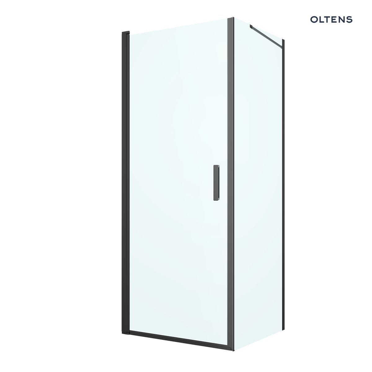 Oltens Rinnan kabina prysznicowa 80x80 cm kwadratowa drzwi ze ścianką czarny mat/szkło przezroczyste 20013300