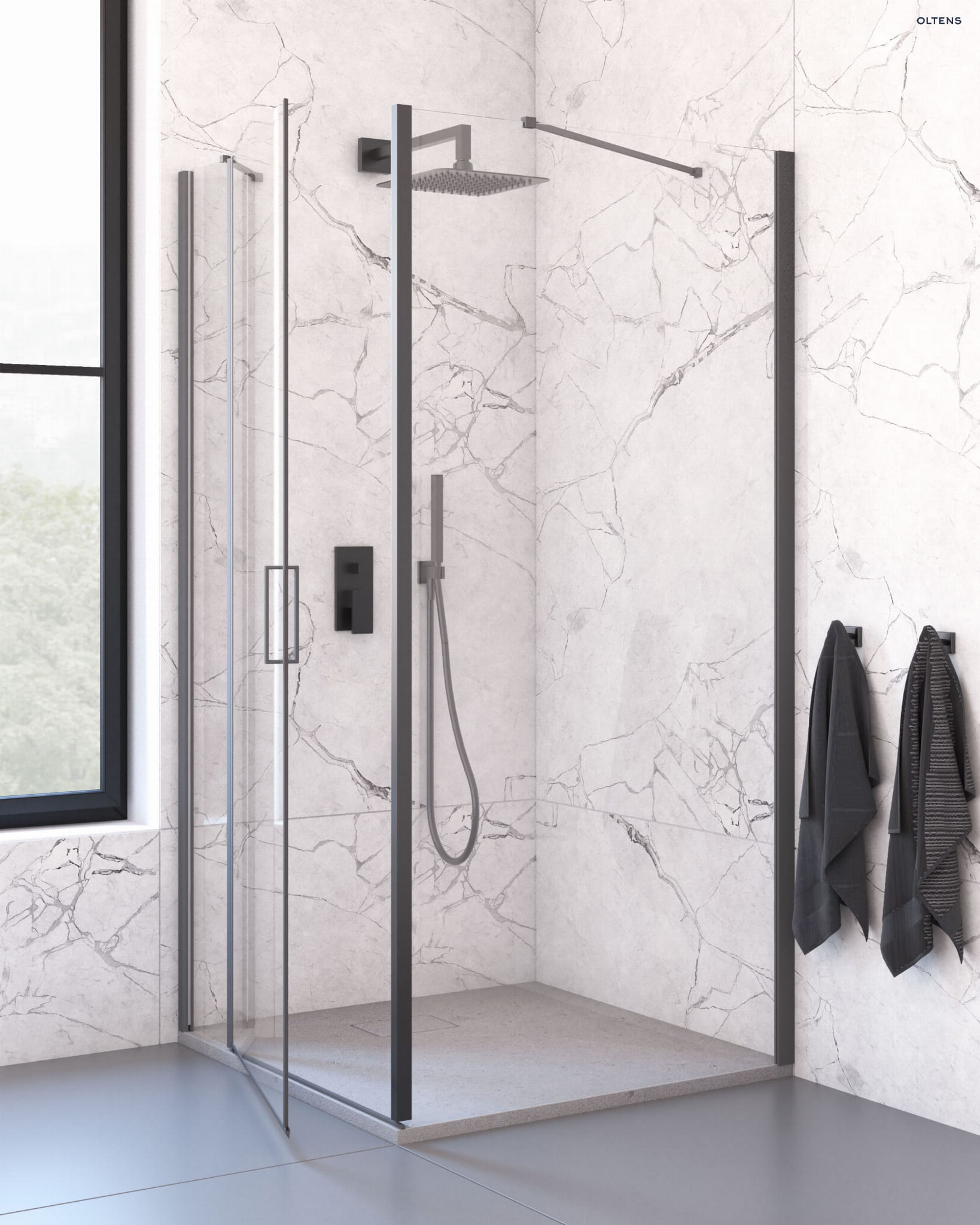 Oltens Verdal kabina prysznicowa 90x90 cm kwadratowa drzwi ze ścianką czarny mat/szkło przezroczyste 20011300