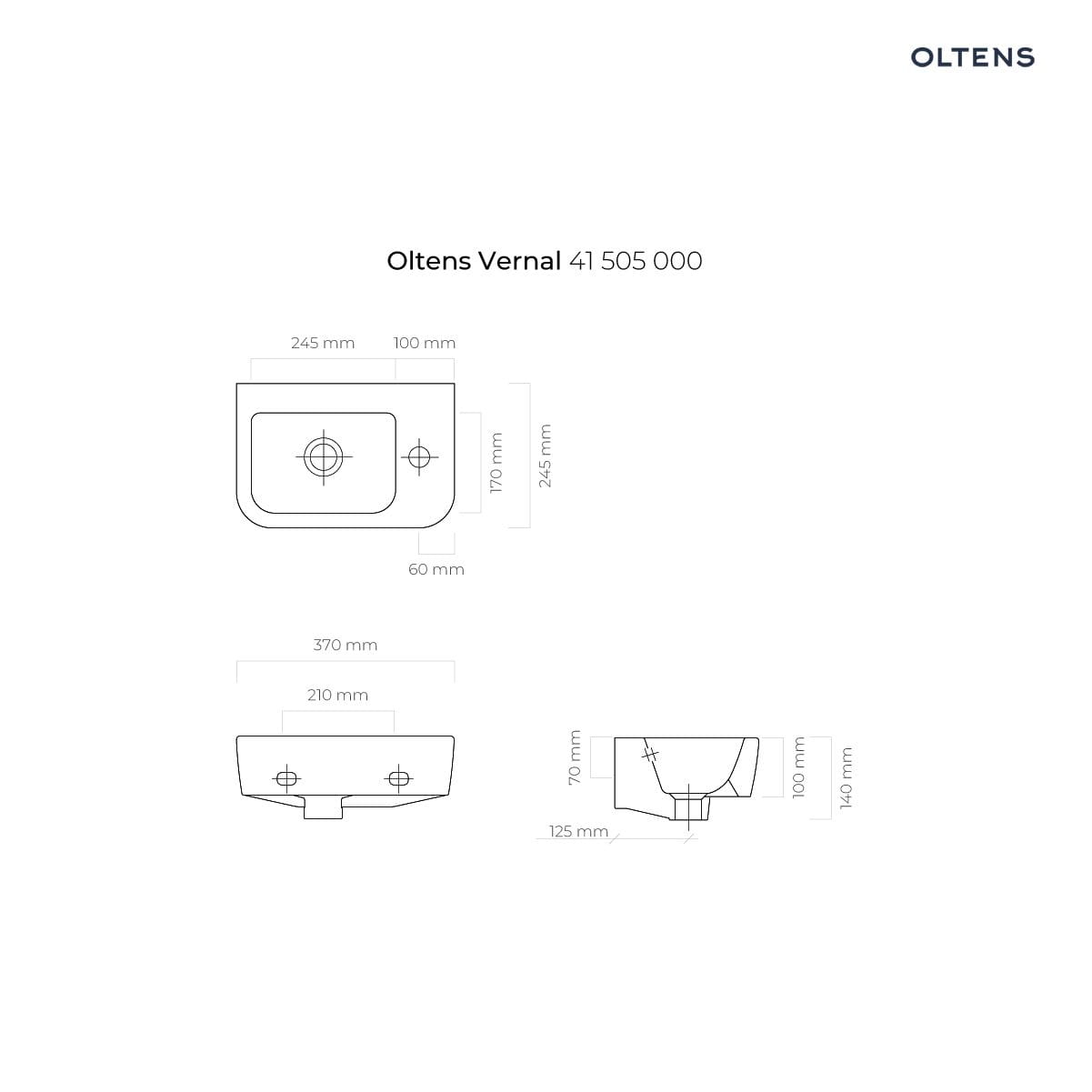 Oltens Vernal umywalka 37x24.5 cm cm wisząca prawa z powłoką SmartClean biała 41505000