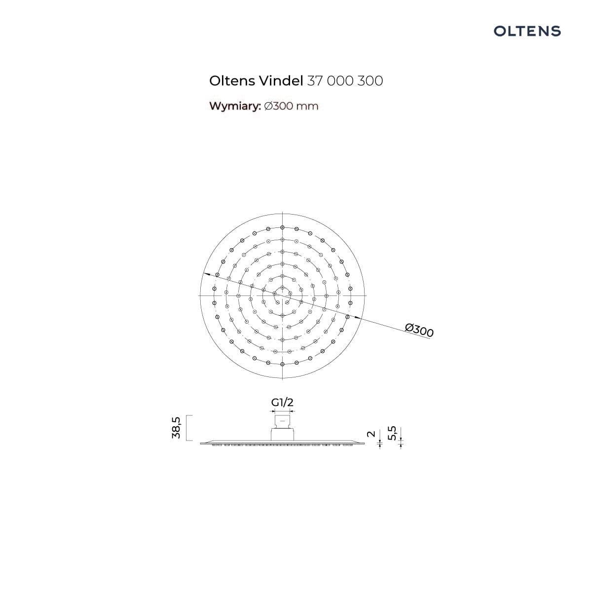 Oltens Vindel deszczownica 30 cm okrągła czarny mat 37000300