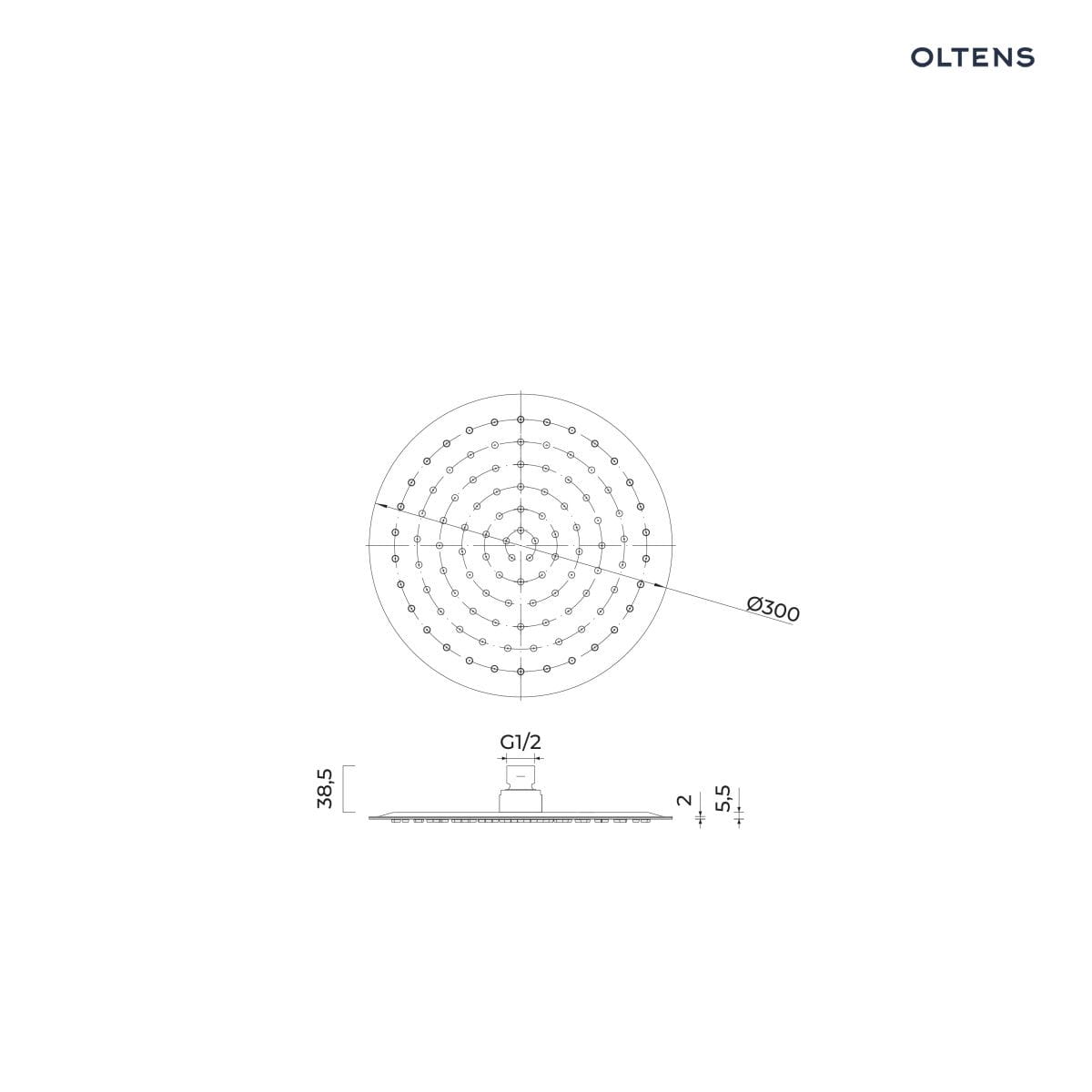 Oltens Vindel deszczownica 30 cm okrągła złoto szczotkowane 37000810